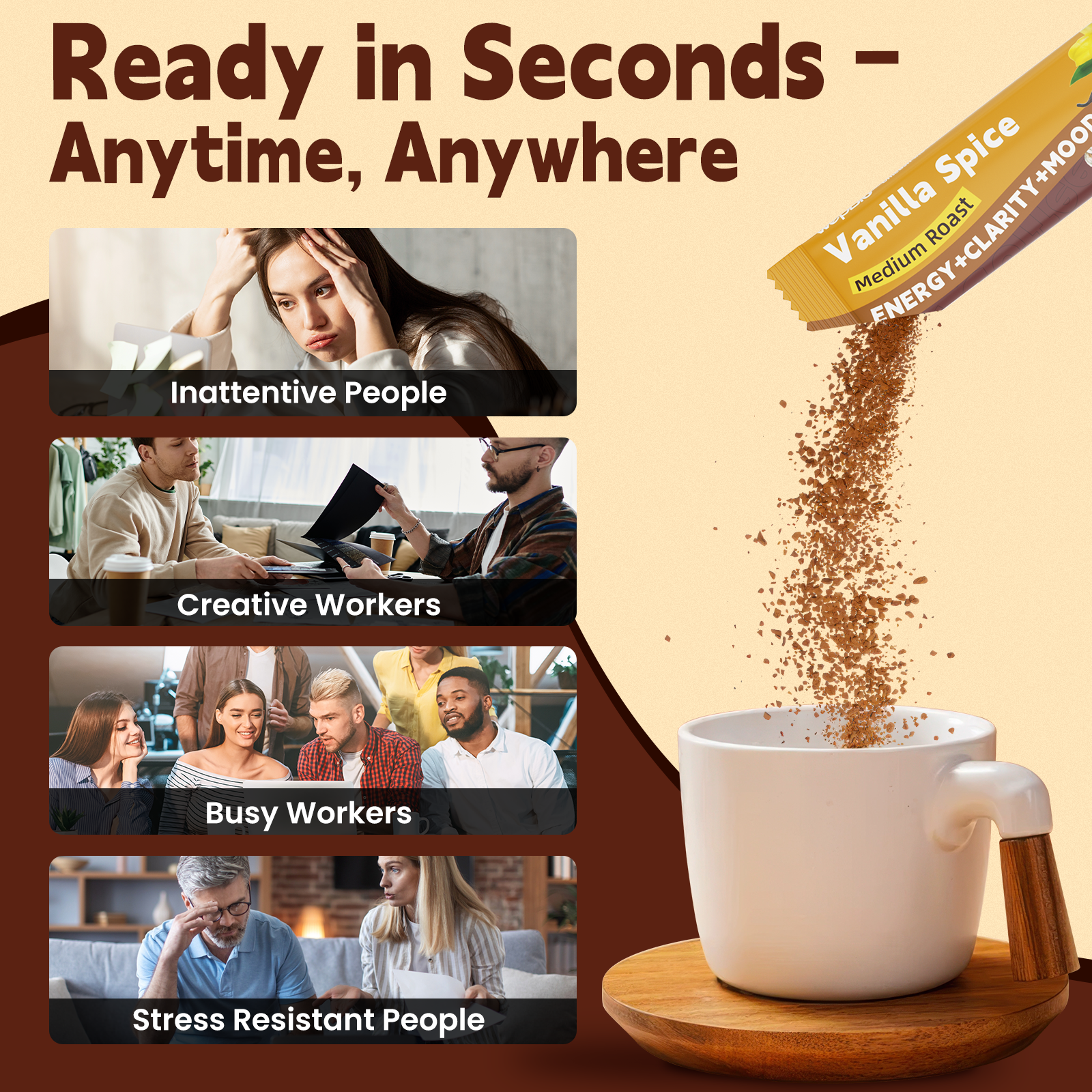 Discover your perfect cup with four distinctflavors-Original Black for a bold start, Mochafor smooth chocolate richness, Hazelnut for anutty creamy finish, and Vanilla for silkysweetness. Whatever your mood, there’s a 30X blend to match.